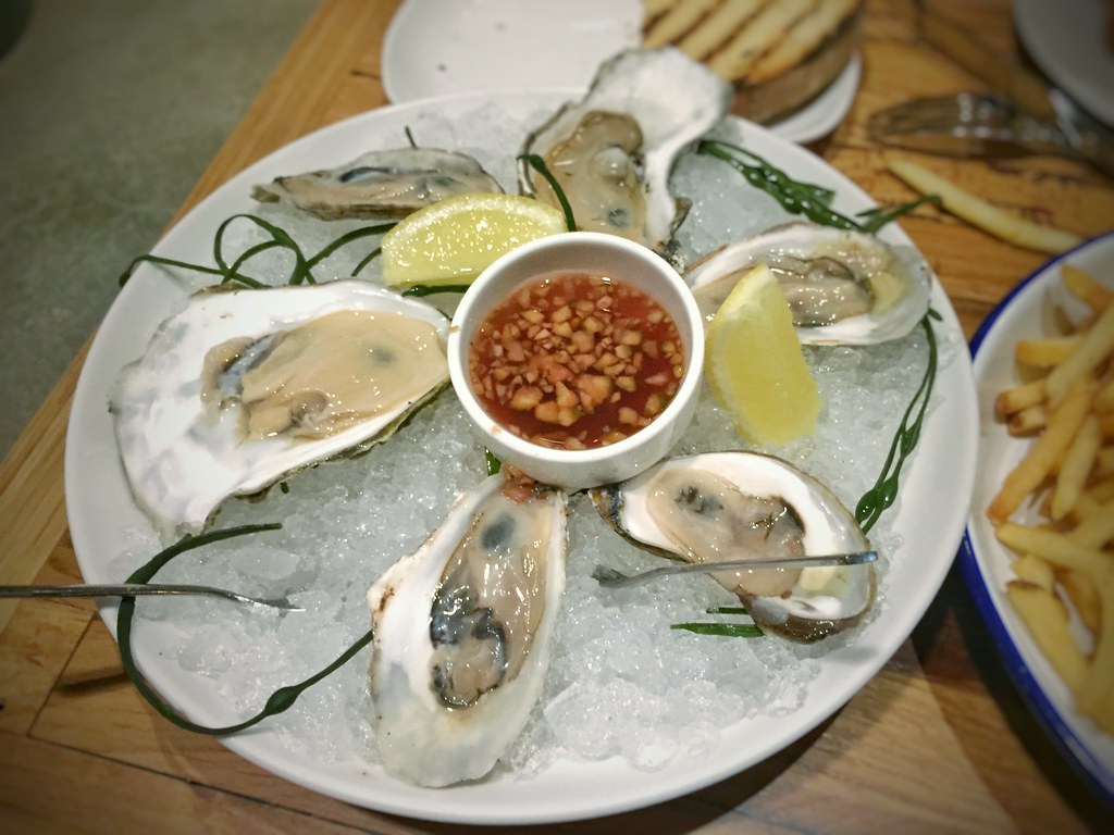 The moderate brine and clean finish of a peak Malpeque handles citrus without being overwhelmed. Standard practice. Don't feel obligated. The oyster is clean an